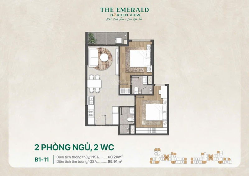 Nhận định mức giá 2,2 tỷ cho căn hộ 2 phòng ngủ, diện tích 63,96 m² tại The Emerald Garden View