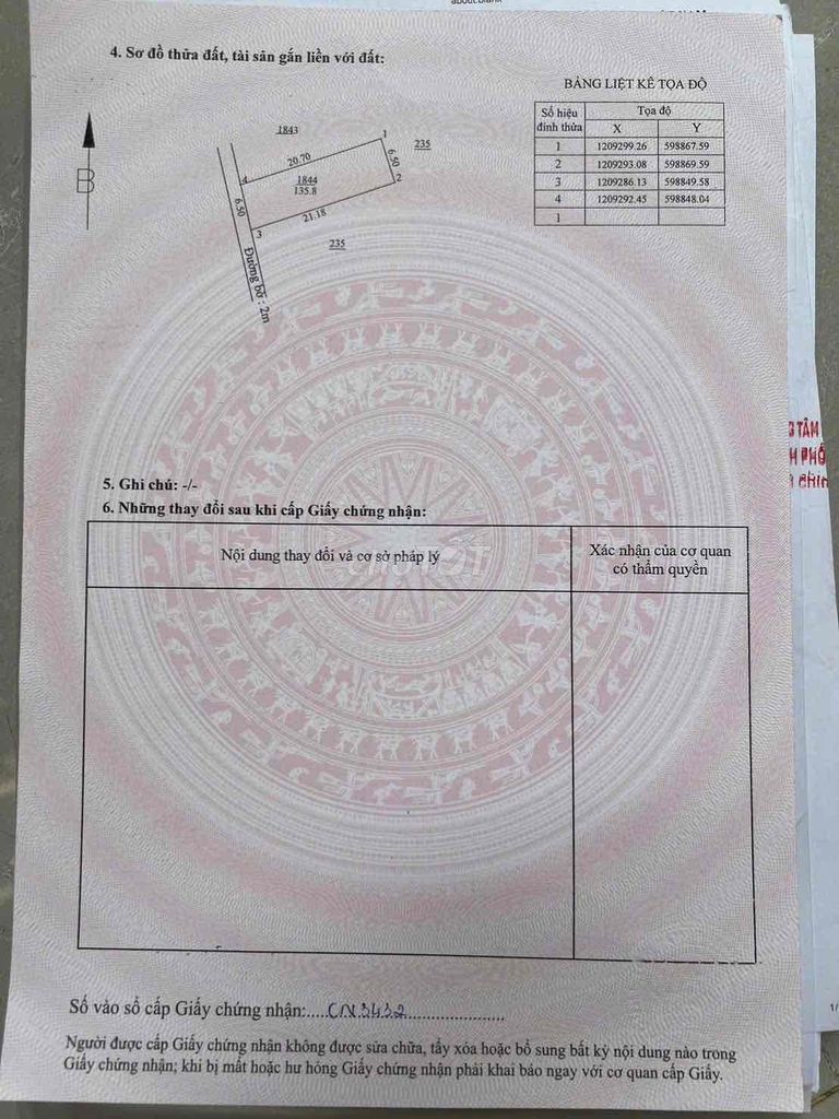 Tổng 135,8m2, thổ cư 60