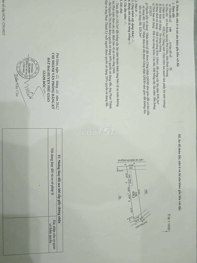 An Bình, Phú Giáo Đất thổ cư, mặt tiền 928 1,35 1,25 Giá đã đề xuất