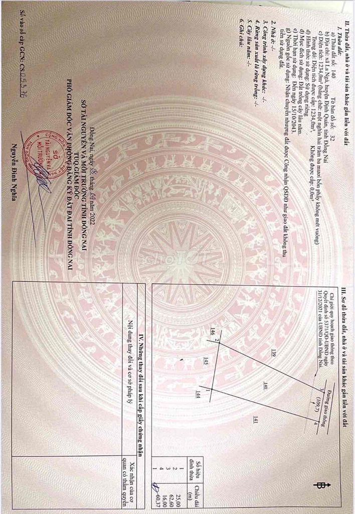 | Xã La Ngà, Huyện Định Quán | Đất nông nghiệp, mặt tiền đường nhựa 8m | 2271 | 1,75 | 3,974 | 2024 |