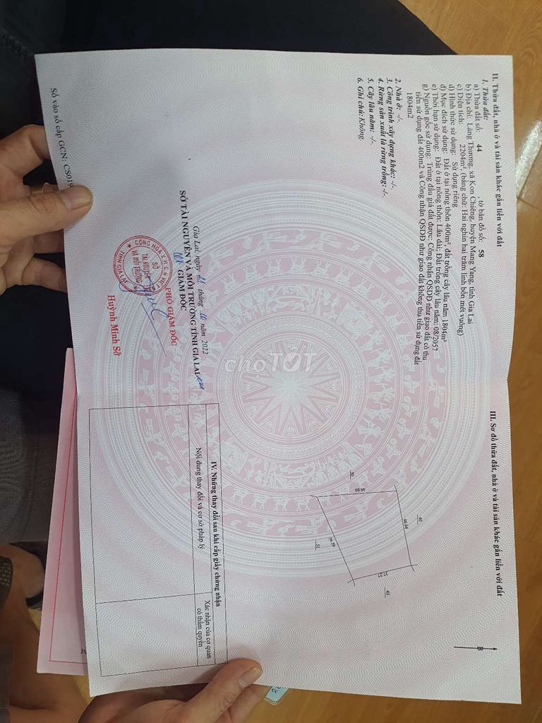 - Vị trí và loại đất: Lô đất có 400m² thổ cư và phần còn lại là cây lâu năm, diện tích lớn 2200m², phù hợp cho mục đích vừa ở vừa sản xuất nông nghiệp.