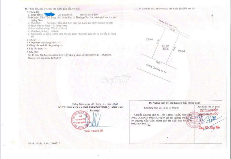 | Biển An Bàng, Hội An | Đất nền dự án, mặt tiền đường Trường Sa | 425 | 40 | 17 | View sông, đối diện công viên, khu du lịch biển phát triển |
