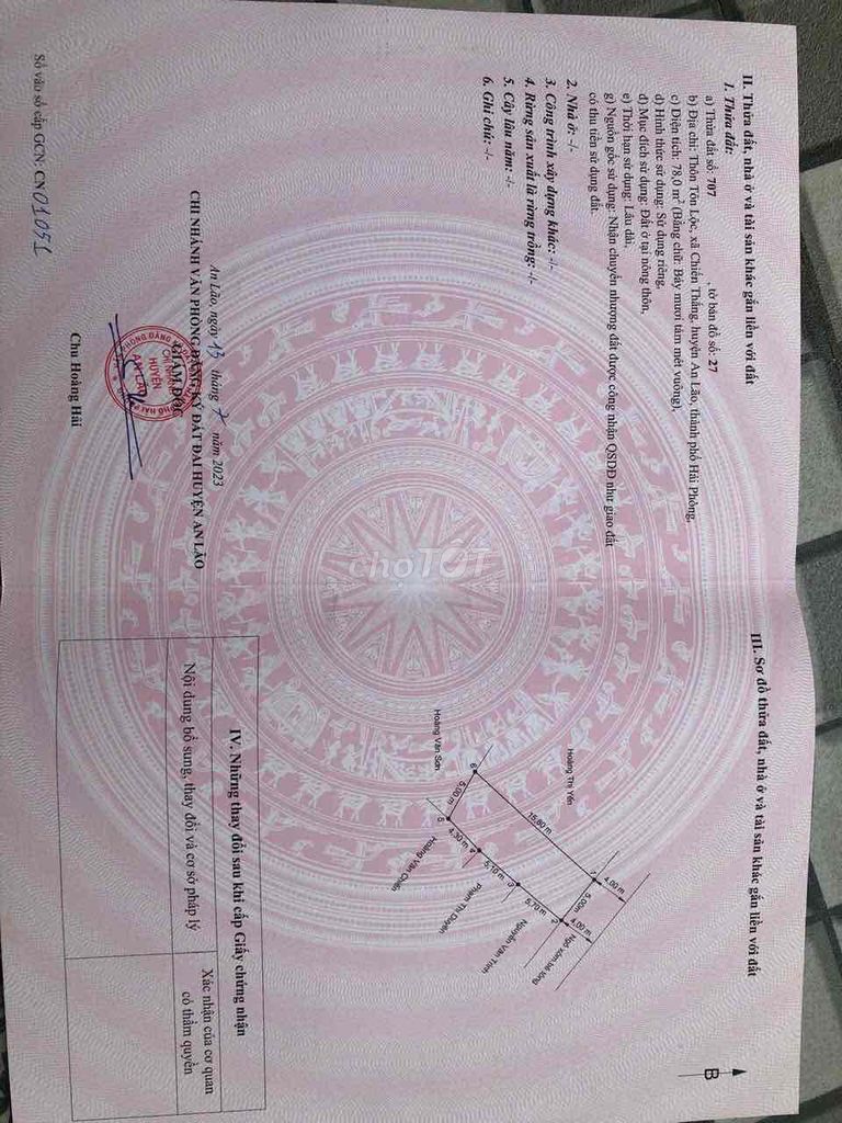 | Chiến Thắng, An Lão, Hải Phòng | 78 | 790 | 10,13 | 2024 Q2 | Gần KCN, đất thổ cư, hẻm xe hơi |