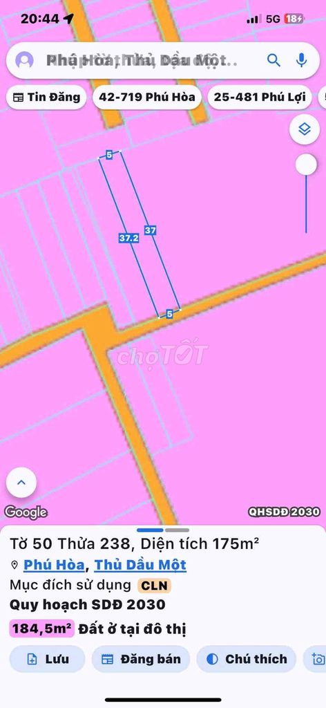 Lô đất có diện tích khá lớn (175 m²), hướng Đông Nam, vị trí ngay hẻm xe hơi, cách trường cấp 2 Phú Hòa chỉ khoảng 100m, thuận tiện cho các gia đình có con đi học. Đất có sổ đỏ đầy đủ, đảm bảo pháp lý rõ ràng nên giá cao hơn đất chưa có sổ hay đất vườn.