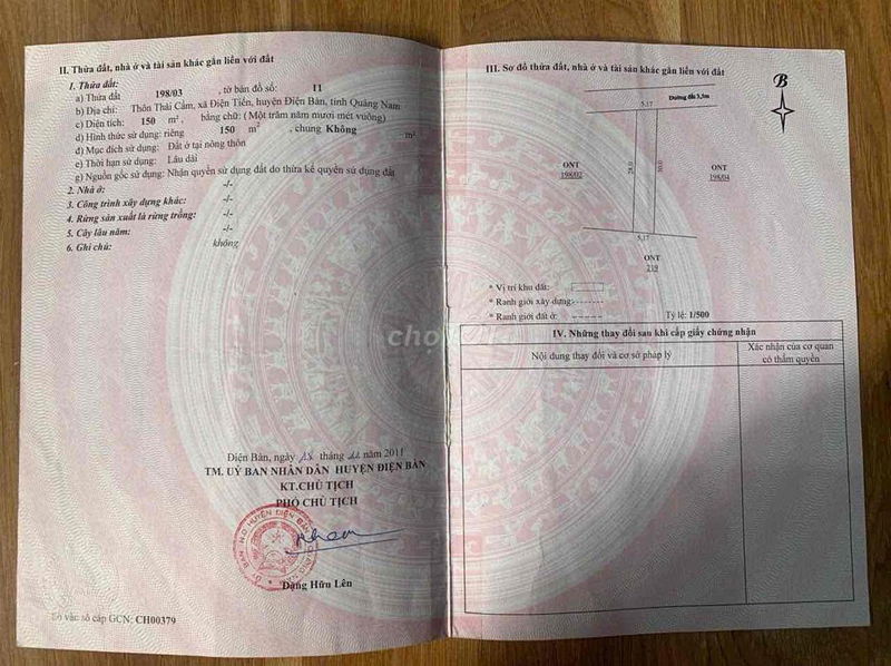 | Đường tỉnh 605, Xã Điện Tiến | 150 | 9,33 | 1,4 | Đất thổ cư, sổ đỏ, hẻm xe hơi 5m |