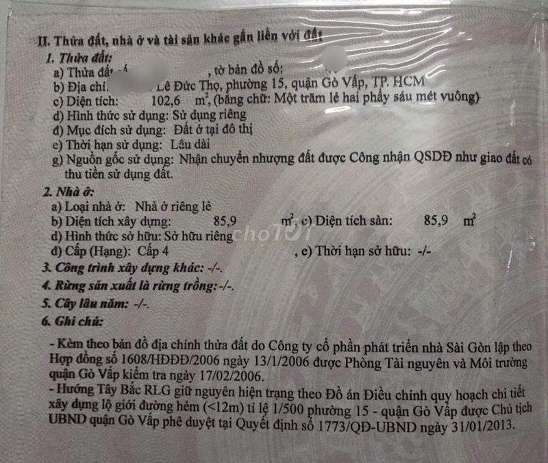 - Xác nhận quy hoạch chi tiết khu vực, đặc biệt liên quan đến chiều ngang đất và mật độ xây dựng.