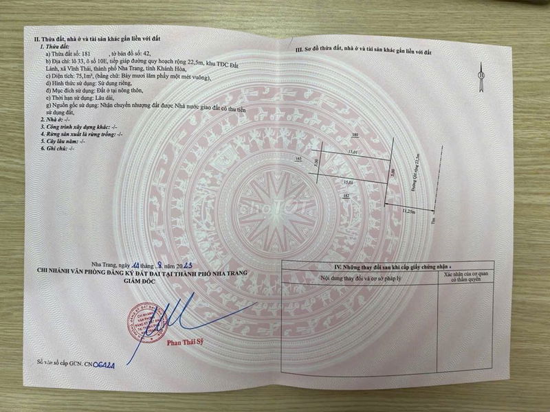 Đất Lành, Vĩnh Thái (mặt tiền đường 22m) 75 56 4,2 Giá chào bán, đất thổ cư, sổ đỏ