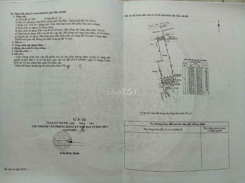 | Đường Tam Bình, Phường Tam Bình, TP Thủ Đức | 500 | 25 | 50 | Thổ cư | Gần trung tâm, đất mặt tiền, sổ đỏ đầy đủ |