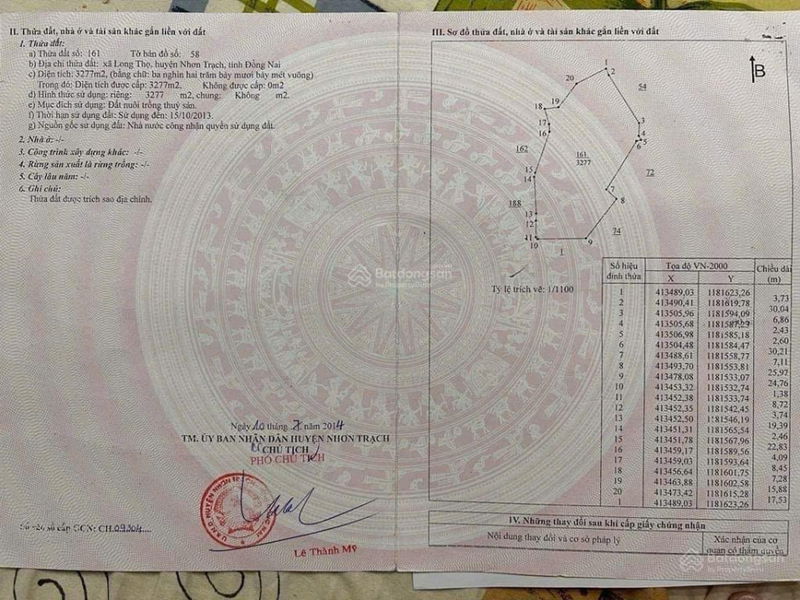 Tổng diện tích: 5.564 m² - đã chuyển 800 m² lên đất ở nông thôn. Bề ngang mặt tiền 65m.