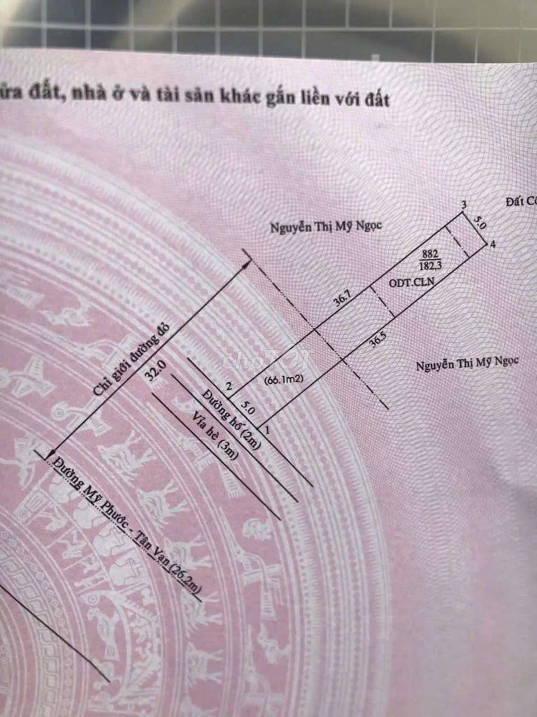 | Mỹ Phước – Tân Vạn, cách bệnh viện 500m | 200 | 5,2 | 26 | Đất thổ cư, sổ hồng, khu dân cư đã ổn định |
