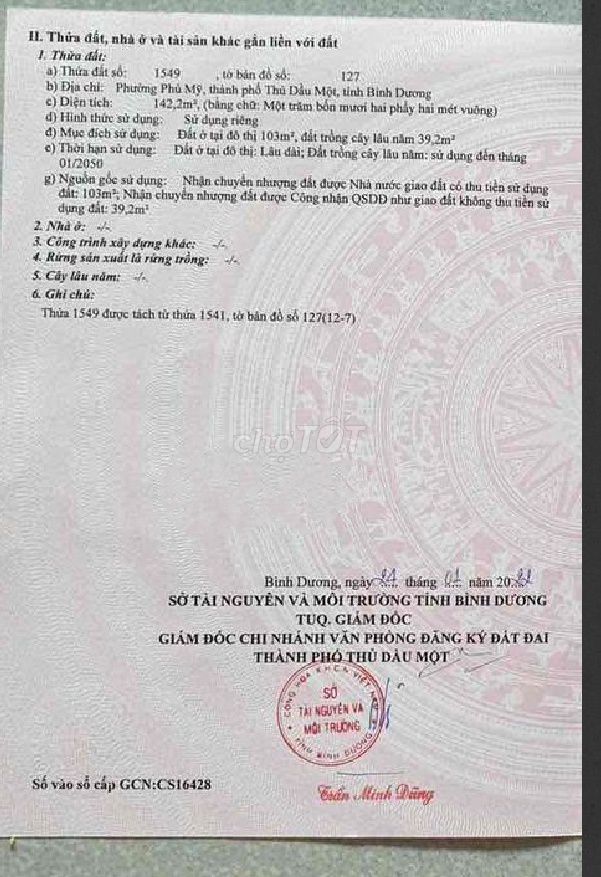 | DX050, Phường Hiệp Thành (bán hiện tại) | Đất thổ cư | 142 | 29,57 | 4,199 | Đường nhựa 8m, xây dựng tự do, gần công viên, trường học, chợ |