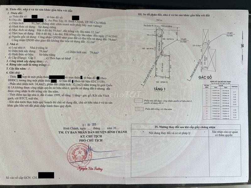 • Đã có sổ đỏ và 60 m² thổ cư.