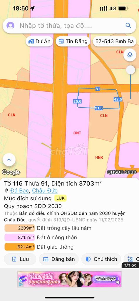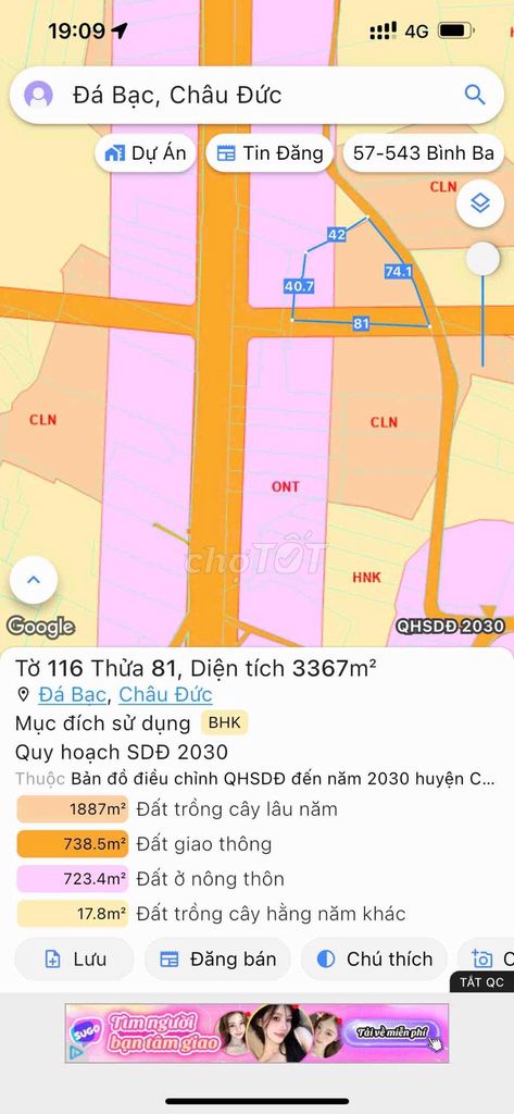 Tiêu chí Đất tại xã Đá Bạc (BĐS đang xem) Tham khảo đất nông nghiệp khu vực lân cận Đất thổ cư gần đó