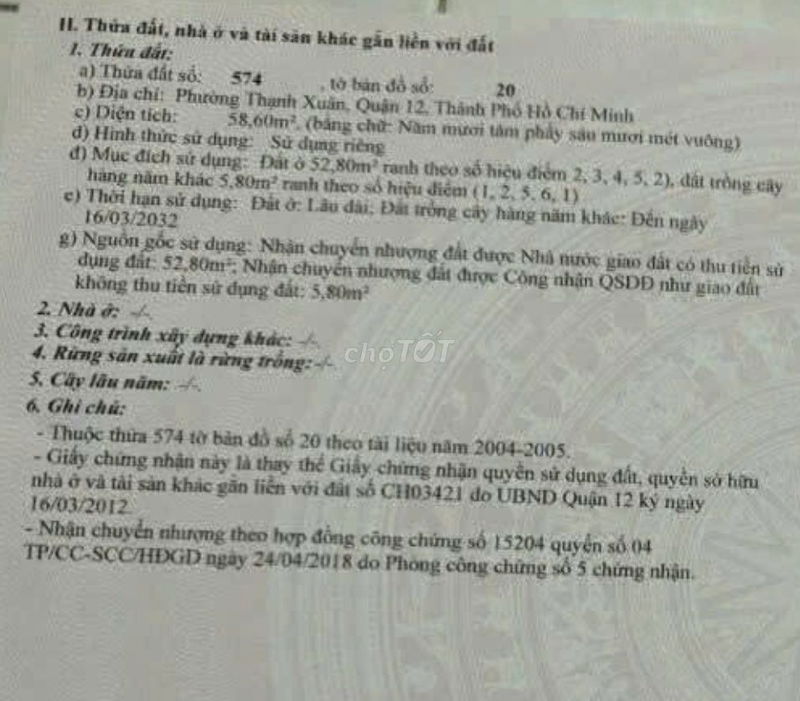 | Tiêu chí | Lô đất Thạnh Xuân 40 (bài phân tích) | Giá đất trung bình Quận 12 (2024) | Ghi chú |