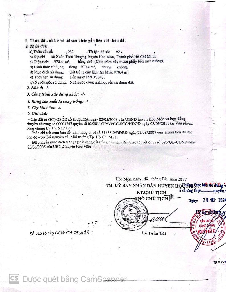 Đất mặt tiền đường Dương Công Khi, xã Xuân Thới Thượng, huyện Hóc Môn, diện tích 970.4 m², giá 20 tỷ đồng tương đương khoảng 20,61 triệu/m². Đây là loại đất nông nghiệp, chưa có thổ cư, nhưng đã có sổ đỏ. Vị trí đất nằm trên tuyến đường huyết mạch, kết nối các tuyến quốc lộ, khu dân cư đông đúc, gần chợ, trường học, có nhà và sân vườn sẵn để sử dụng.