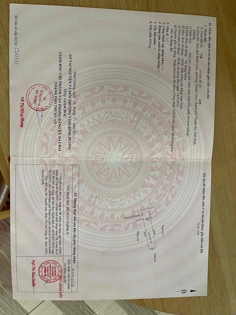 | Phường Thuận Giao | Đất thổ cư | 100 | 20 – 22 | 2,0 – 2,2 | Q1/2024 |