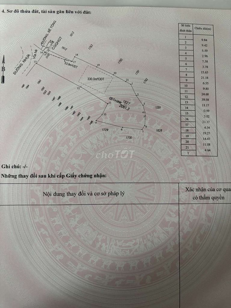 Hổ Lang, Dĩ An (lô đất phân tích) 2060 9,71 20 Thổ cư 360m², mặt tiền 15m, đường nhựa lớn, đã có sổ