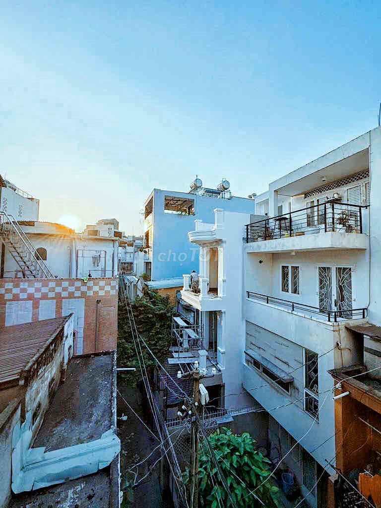 Căn nhà có diện tích đất 49.5 m², mặt tiền 4.5m, chiều dài 11m, xây 4 tầng với 6 phòng ngủ và 6 phòng vệ sinh, tọa lạc tại hẻm xe hơi trên đường Lê Văn Sỹ, Phường 14, Quận 3. Nhà đã có sổ hồng, nội thất cao cấp và vị trí trung tâm, gần nhiều tuyến đường lớn và khu chợ Nguyễn Văn Trỗi, thuận tiện di chuyển về nhiều quận trung tâm TP. Hồ Chí Minh.
