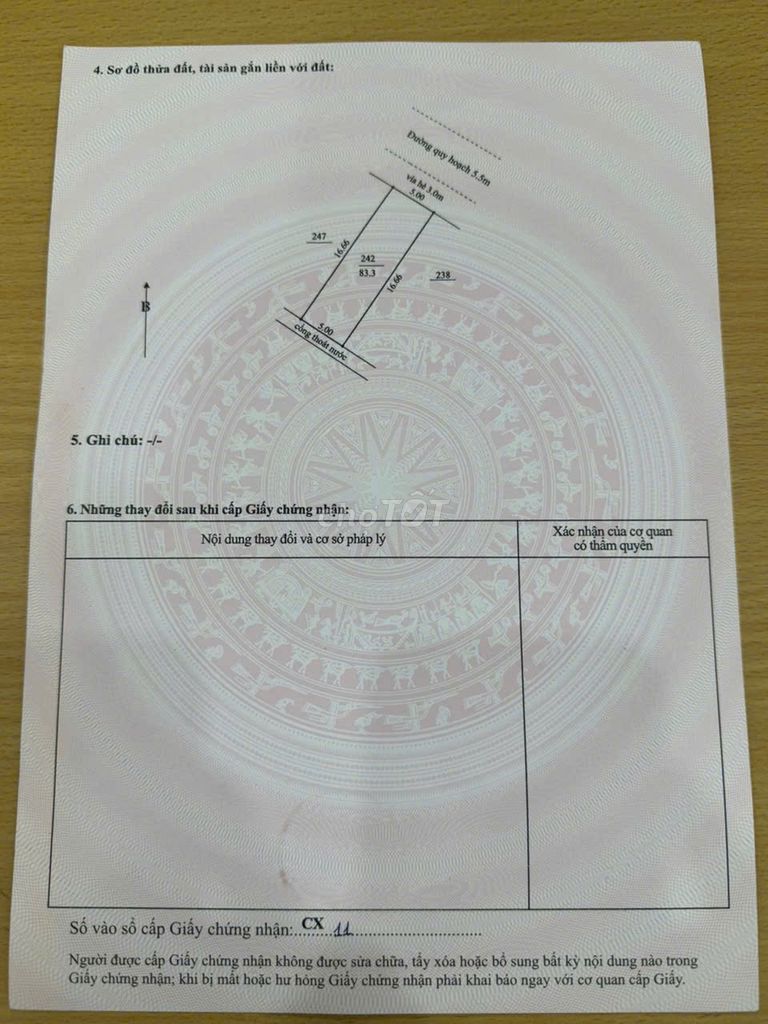 Diện tích 83 m² (5×16.6m) Không áp dụng Diện tích vừa phải, phù hợp xây nhà phố hoặc đầu tư.