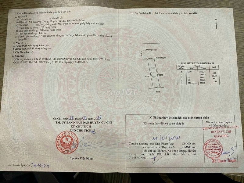 | Nguyễn Thị Lắng, xã Tân Phú Trung, Củ Chi | Dãy trọ, 5 phòng + 1 kiot | 112 | 1,200 | 10,71 | 06/2024 |