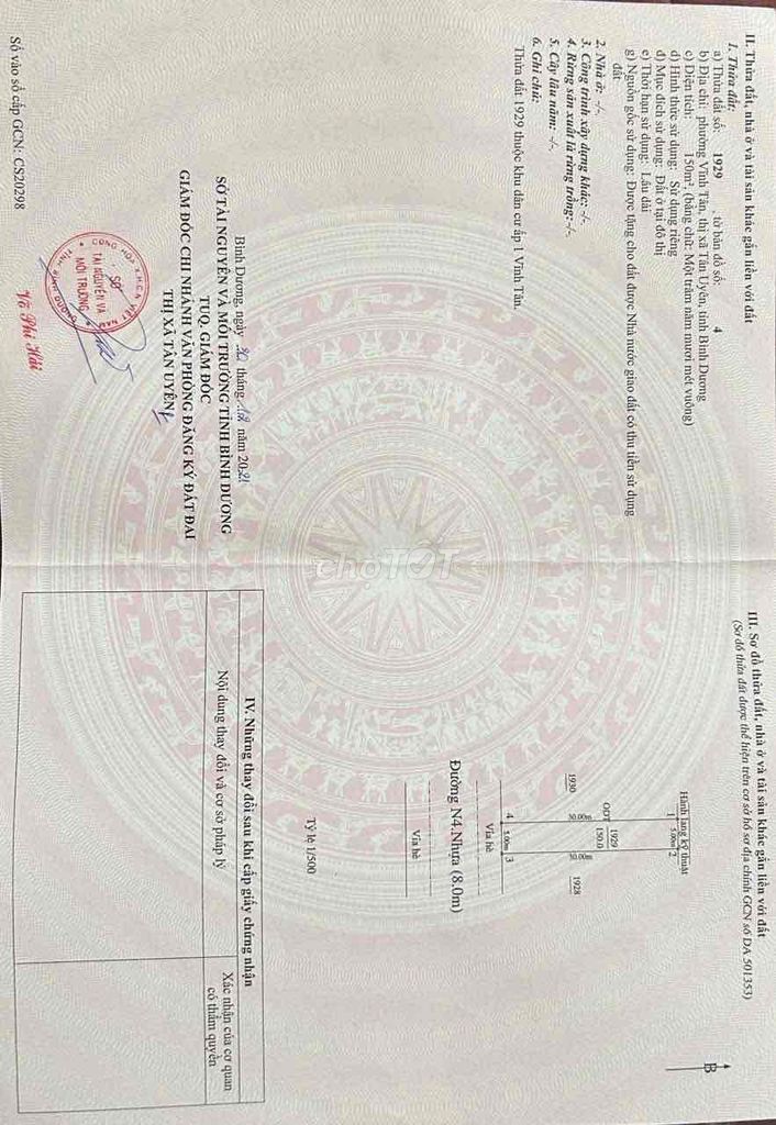 Với thông tin lô đất có diện tích 150m² (5m x 30m), hướng Nam, nằm tại đường N4, xã Vĩnh Tân, Thị xã Tân Uyên, tỉnh Bình Dương. Lô đất thuộc loại đất thổ cư, đã có sổ hồng, mặt đường rộng 8m, vỉa hè 4m mỗi bên, phù hợp cho mục đích xây dựng nhà ở hoặc kinh doanh nhỏ.