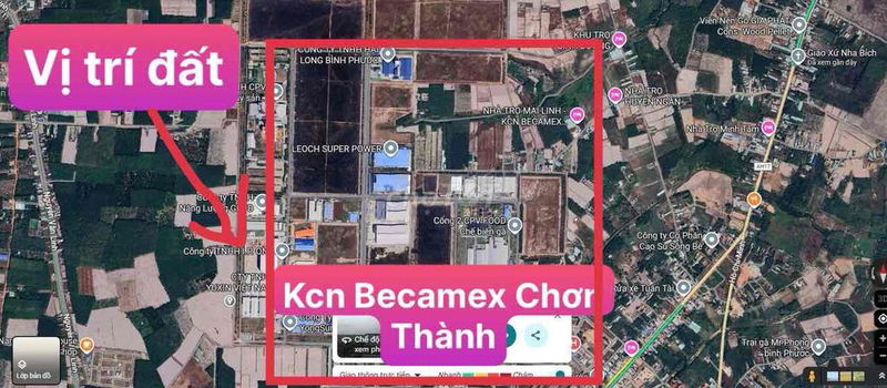 | Vị trí | Gần KCN Becamex Chơn Thành | Khu vực có tiềm năng phát triển công nghiệp, thu hút lao động | Vị trí chiến lược, phù hợp mua đầu tư xây trọ hoặc kinh doanh |