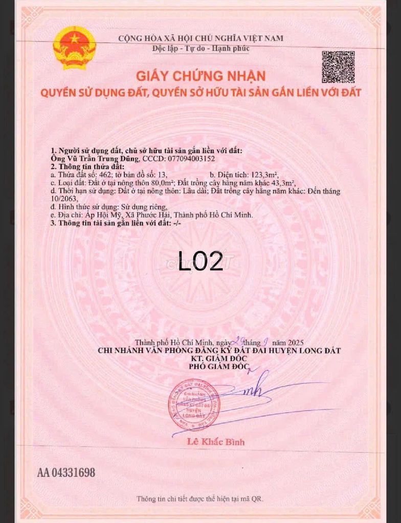 | Tiêu chí | Bất động sản đang chào bán | Tham khảo thị trường huyện Đất Đỏ | Ghi chú |