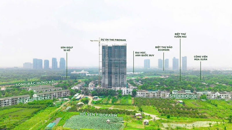 The Fibonan Ecopark tọa lạc tại xã Xuân Quan, Văn Giang, Hưng Yên, nằm trong khu đô thị Ecopark nổi tiếng với không gian xanh, tiện ích đồng bộ và kết nối thuận lợi với trung tâm Hà Nội chỉ trong khoảng 20 phút di chuyển. Vị trí này phù hợp với nhóm khách hàng tìm kiếm môi trường sống trong lành, tiện nghi và khả năng đầu tư dài hạn.