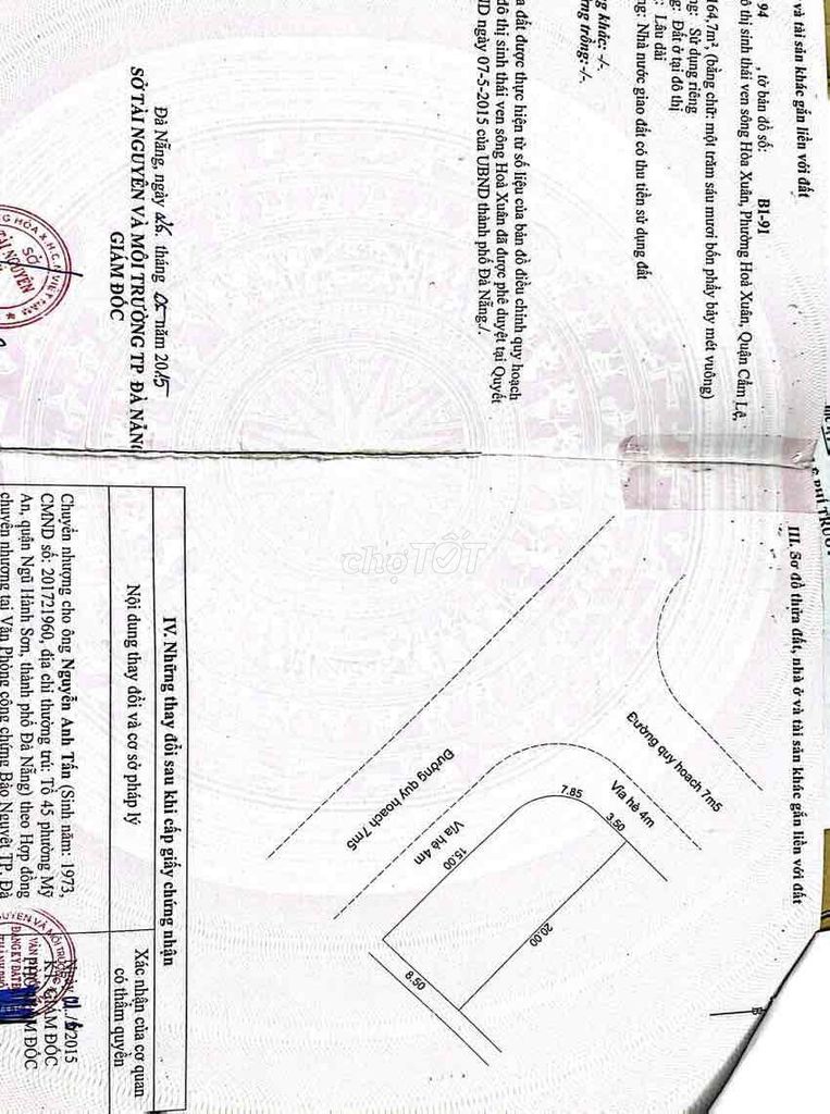 | Đường Tôn Đức Thắng, Q. Hải Châu (gần Q. Cẩm Lệ) | 160 | 85 – 90 | 13.6 – 14.4 | Vị trí trung tâm, gần sông, mặt tiền | 2024 |