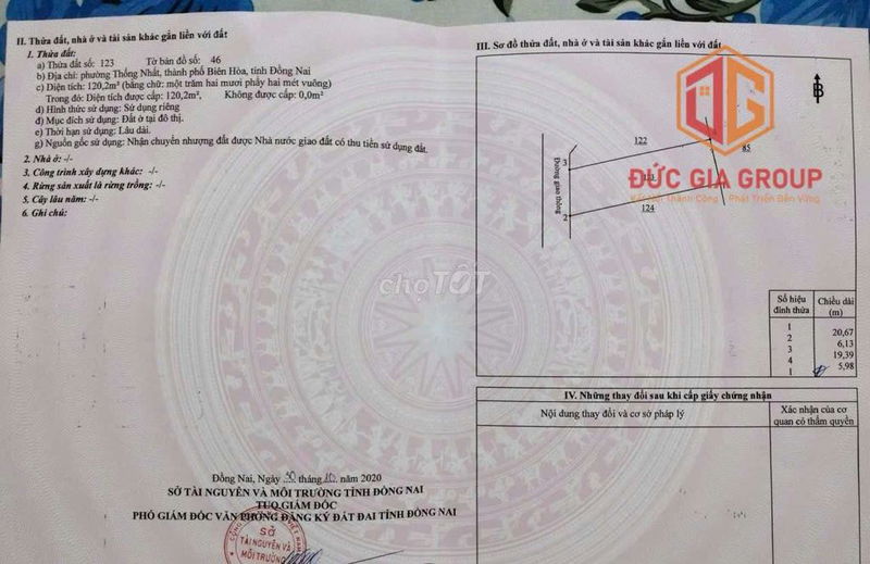 | Đường D4, Phường Thống Nhất, Biên Hòa | 120 | 76,67 | 9,2 | Mặt tiền, sổ riêng, full thổ cư | 2024 |