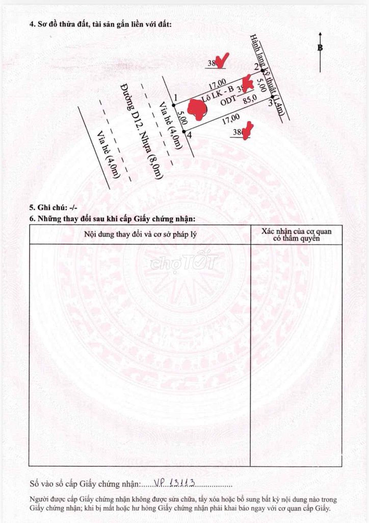 Lô đất có diện tích 85m² (5m x 17m), thổ cư 100%, mặt tiền đường quốc lộ 13 – tuyến giao thông huyết mạch kết nối Bình Dương với TP.HCM và các tỉnh lân cận. Hướng Đông Nam là hướng được ưa chuộng tại khu vực nhờ đón nắng sáng và tránh được gió Tây Nam nóng bức. Đất đã có sổ đỏ rõ ràng, đảm bảo pháp lý minh bạch, thuận tiện cho việc mua bán và sang tên.