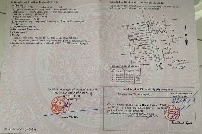 | An Phú Đông 13, Quận 12 | 101 | 77,23 | 7,8 | Mặt tiền 5m, đường 20m, gần sông Sài Gòn, đất thổ cư, có sổ đỏ |