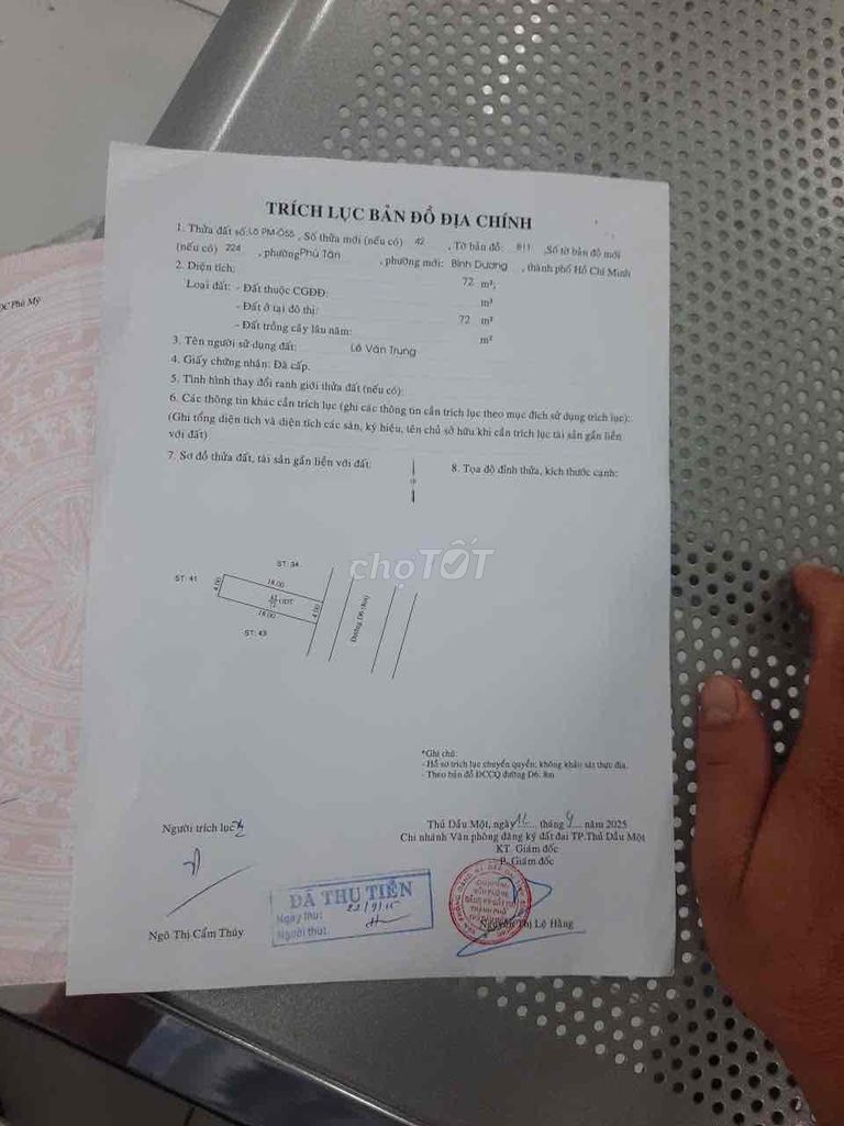 Đối với lô đất có diện tích 72 m² (4m x 18m), tọa lạc tại vị trí gần góc D6 với N3, đường rộng 8m, hướng Đông, thuộc khu vực Phường Phú Tân, TP Thủ Dầu Một, Bình Dương, mức giá 2,5 tỷ đồng tương ứng với giá khoảng 34,72 triệu đồng/m².