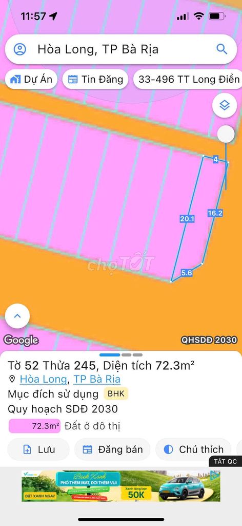 Lô đất diện tích 80m² (4x20m), đất thổ cư, đã có sổ hồng riêng, thuộc khu vực Hòa Long, TP. Bà Rịa, với mức giá 1,15 tỷ đồng tương đương 14,38 triệu đồng/m². Đây là mức giá khá cao so với mặt bằng chung đất thổ cư tại các khu vực ngoại thành Bà Rịa – Vũng Tàu, đặc biệt với chiều ngang chỉ 4m khá khiêm tốn, làm hạn chế khả năng xây dựng tối ưu.