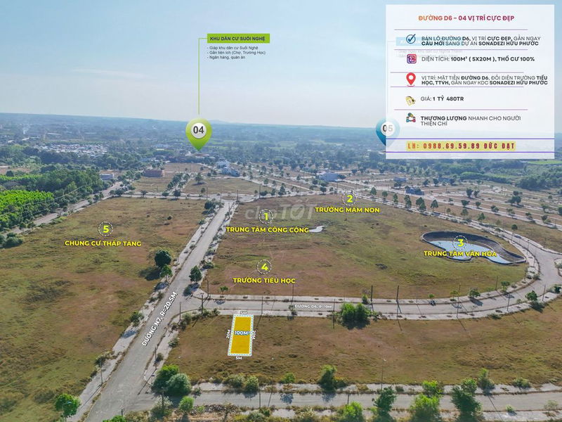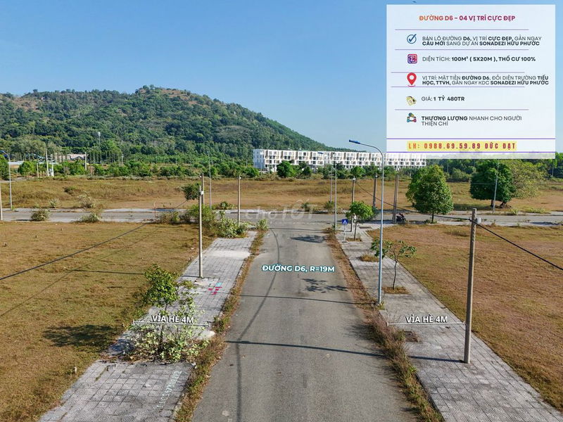 📌 Vị trí: Đường 𝗗𝟲, đối diện Trường Mầm Non - Trung Tâm Văn Hóa, Chung Cư Thấp Tầng, Sát ngay cầu mới sang Dự Án Sonadezi Hữu Phước.