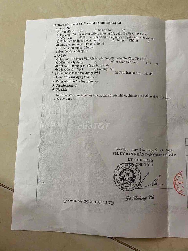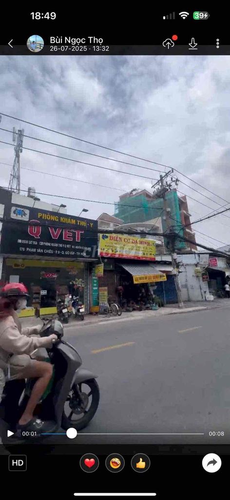 | Diện tích đất | 63.8 m² (5m x 13m) | Diện tích trung bình cho nhà mặt tiền Gò Vấp, phù hợp để xây dựng hoặc đầu tư cho thuê |