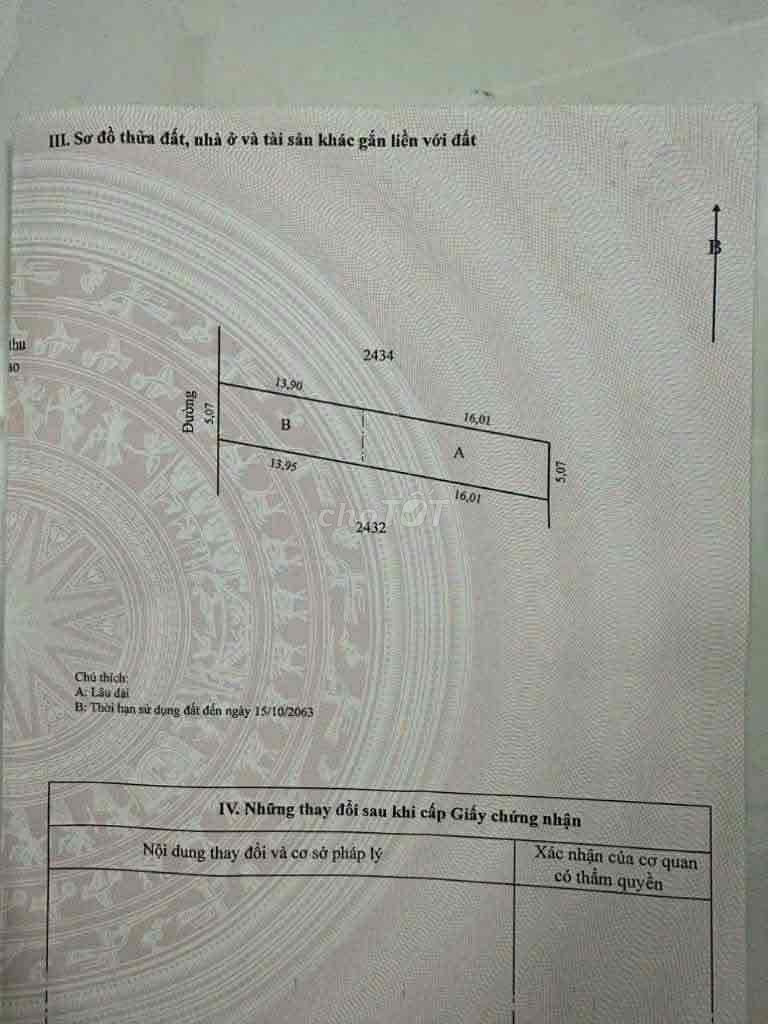 DT: 150m2 (5m x 30m) có 80m2 thổ cư .