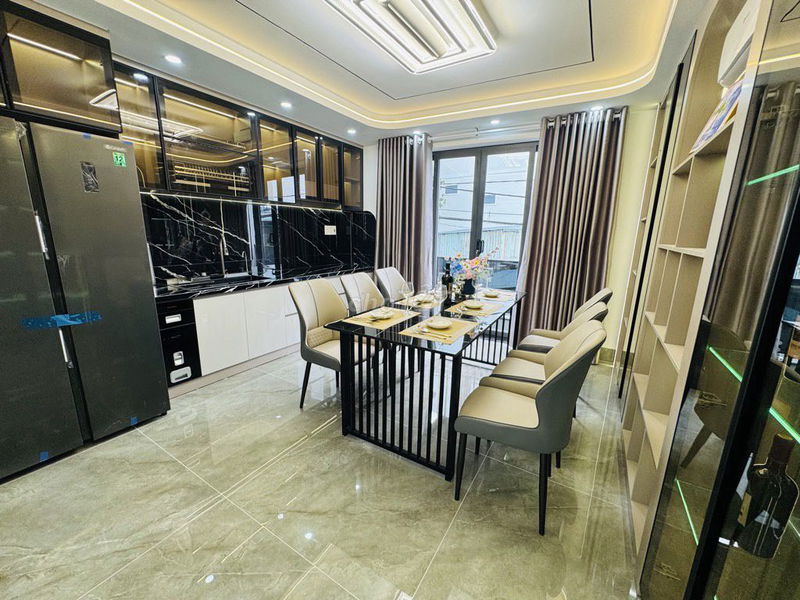 • Nhà xây 5 tầng với đầy đủ tiện ích: gara ô tô, 4 phòng ngủ, 5 phòng vệ sinh, sân thượng trước sau, nội thất cao cấp.