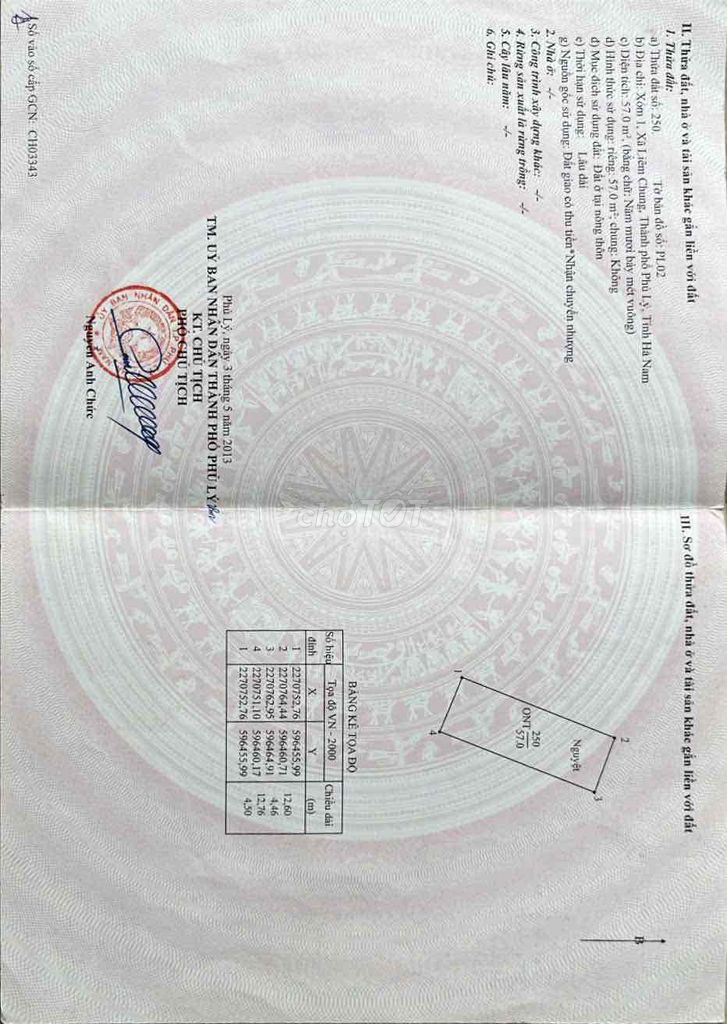 Dựa trên các thông tin mô tả, bất động sản tọa lạc tại Nguyễn Đức Cảnh, Phường Thanh Châu, Thành phố Phủ Lý, Hà Nam. Diện tích đất 57 m², diện tích sử dụng cũng 57 m², nhà có 2 phòng ngủ, 1 phòng vệ sinh, nhà nở hậu, hướng cửa chính Nam, đường ô tô tải có thể vào tận đất. Bất động sản đã có sổ đỏ rõ ràng, thuộc loại nhà ngõ, hẻm.
