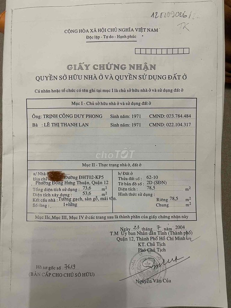Check giá "BÁN NHÀ 5 x 18m GÁC LỬNG – HẺM THÔNG 3,5m – GẦN CHỢ CÂY SỘP Q12"