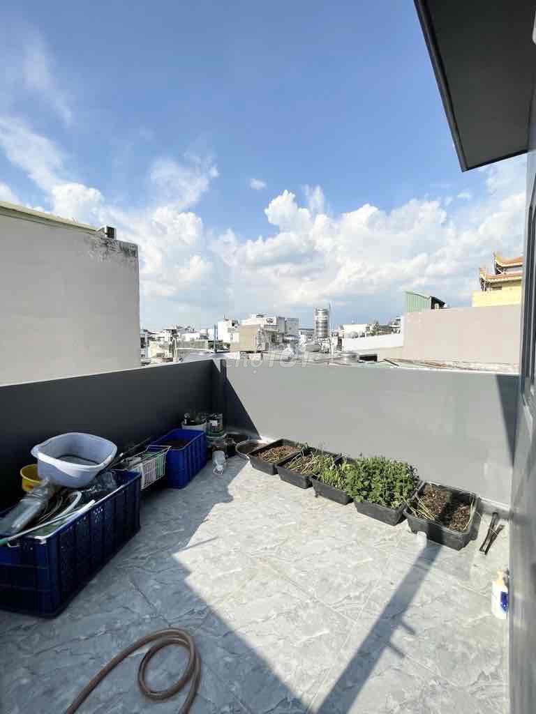 Diện tích 4,2m  x 12m, nở hậu, -  Kết cấu : Nhà mới xây, chủ  xây ở tâm huyết,  1 trệt 2 lầu, sân thượng trước sau... có 2 phòng ngủ , 2wc , sân  phơi , giếng trời sáng thoáng.- Hẻm 4m , an ninh, gần hẻm xe tải tránh,  Khu dân trí, hàng xóm cao tầng thân thiện