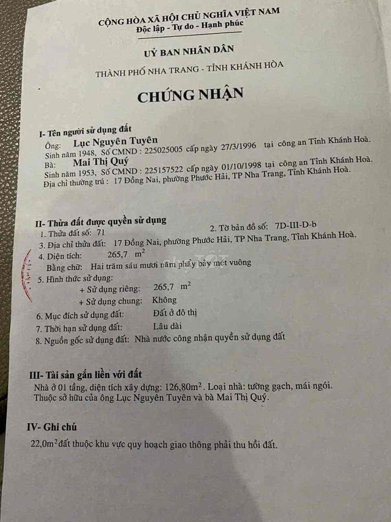 Mức giá 77,49 triệu/m² (20,535 tỷ cho diện tích đất 265 m²) là khá cao so với mặt bằng chung bất động sản tại khu vực TP. Nha Trang, Khánh Hòa. Tuy nhiên, giá này có thể được coi là hợp lý trong một số trường hợp nhất định như vị trí đất mặt tiền đường lớn, thuận tiện kinh doanh hoặc xây dựng nhà ở kết hợp kinh doanh, cùng với việc tặng kèm nhà 2 tầng đầy đủ nội thất và pháp lý rõ ràng.