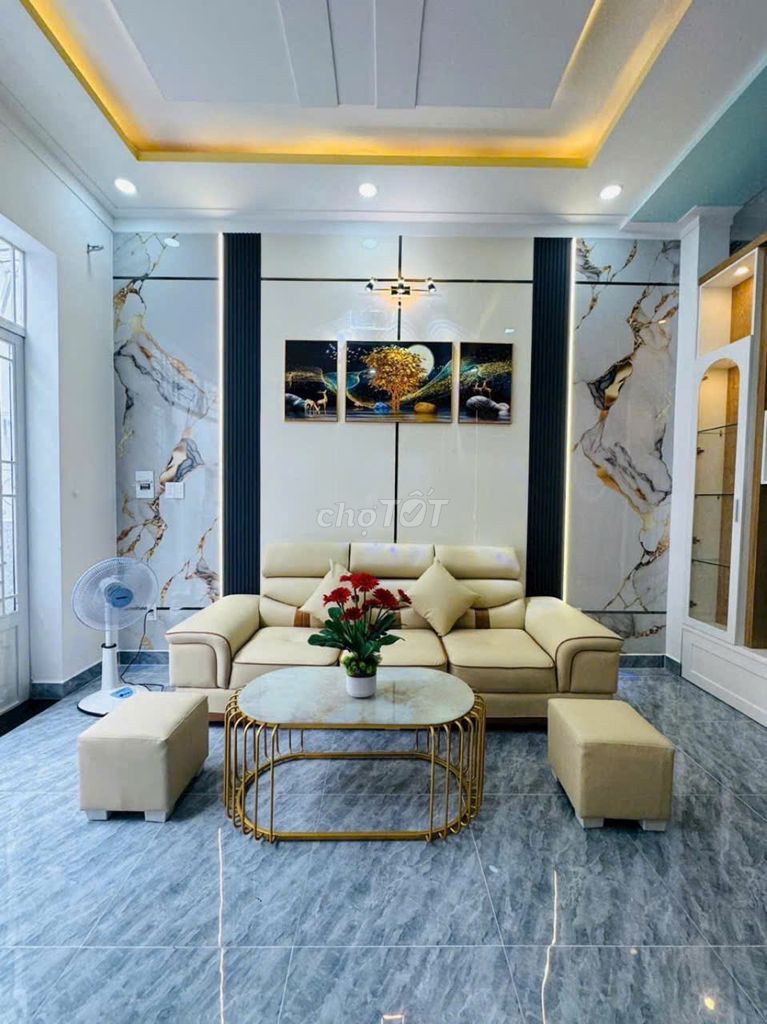 Nhà 1 trệt 2 lầu kiên cố, gồm sân để xe, phòng khách, bếp, 3 phòng ngủ, 3 phòng vệ sinh, phòng giặt và sân thượng rộng. Nhà còn mới và tặng nội thất đầy đủ. Đây là điểm cộng lớn giúp giảm chi phí đầu tư nội thất và nâng cao chất lượng sống ngay khi nhận nhà.