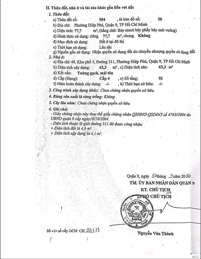 Check giá "Bán nhà đường số 311, phường Hiệp Phú, Quận 9 – DT thực tế ~1"