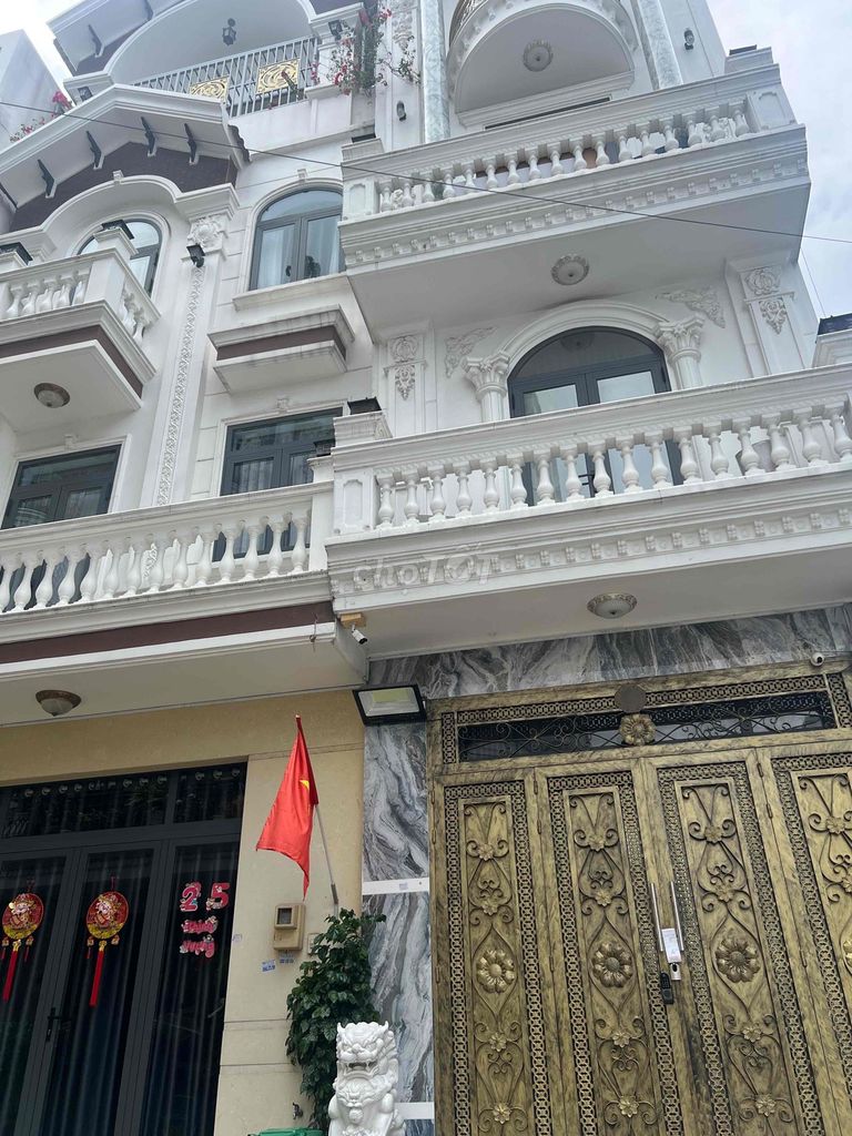 Nhà có diện tích 52 m² (4 x 13 m), với 4 phòng ngủ, 5 phòng vệ sinh, kết cấu 1 trệt 2 lầu sân thượng, nội thất cao cấp, hẻm xe hơi và giấy tờ pháp lý đầy đủ. Giá chào bán 6,4 tỷ đồng tương ứng khoảng 123,08 triệu/m².