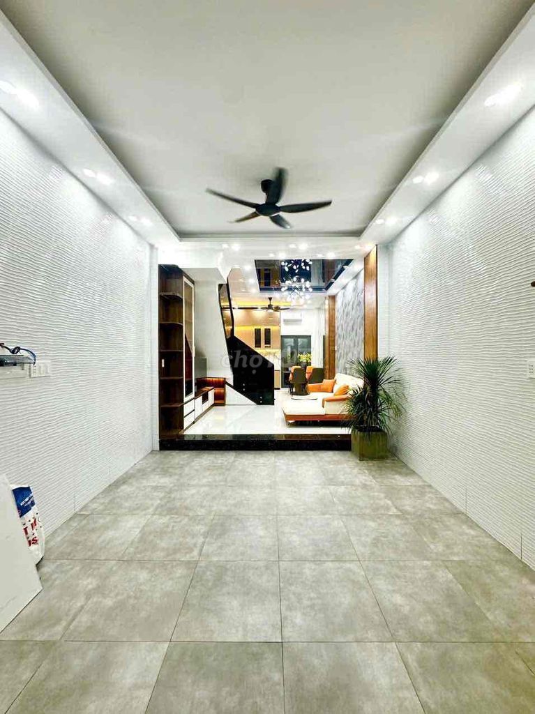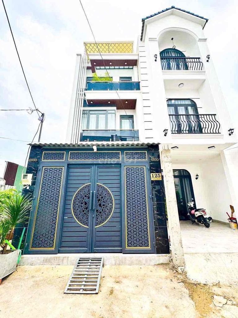 Nhà được xây dựng 1 trệt 2 lầu và sân thượng, tổng 4 tầng, với 4 phòng ngủ và 5 phòng vệ sinh, có gara ô tô, rất phù hợp với gia đình đông người hoặc nhu cầu ở kết hợp làm việc tại nhà. Nội thất cao cấp cũng là điểm cộng lớn, giúp tăng giá trị sử dụng.