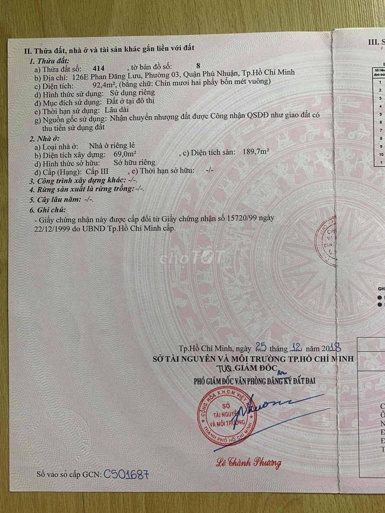 Phan Đăng Lưu, Phú Nhuận Nhà biệt thự 92.4 (diện tích đất) 290 26.8 Giá tham khảo theo diện tích đất, hẻm rộng