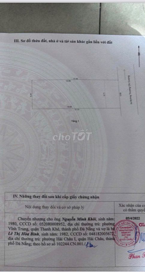 Giá 6,1 tỷ đồng tương ứng khoảng 60,4 triệu đồng/m² cho nhà diện tích đất 101 m², sử dụng 84 m², mặt tiền 5,81 m, dài 17,73 m, một tầng, bàn giao thô, đã có sổ đỏ, trong ngõ gần các tuyến đường lớn như Thăng Long, 2/9, khu Hoà Cường.
