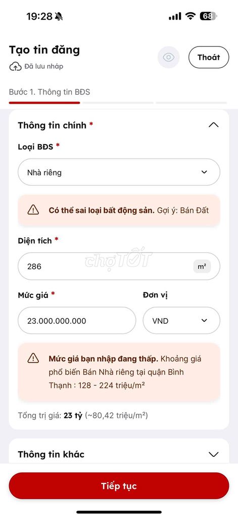 Mức giá 23 tỷ tương đương khoảng 80,42 triệu đồng/m² cho diện tích 286 m² tại vị trí đường Nơ Trang Long, Quận Bình Thạnh, Tp Hồ Chí Minh là mức giá cao nhưng không phải là không hợp lý trong bối cảnh thị trường hiện nay. Đặc biệt, đây là khu vực trung tâm, có hẻm xe hơi thông tứ phía, phù hợp cho việc xây dựng nhà ở hoặc kinh doanh cho thuê phòng trọ với doanh thu ổn định.
