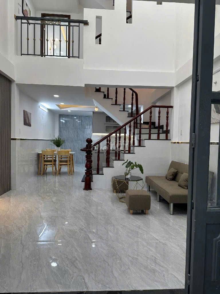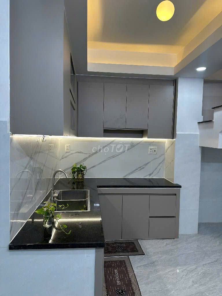 Nhà có 4 phòng ngủ, 3 tầng, hoàn công mới, thiết kế đẹp, sân thượng rộng và có các tiện ích như máy nước nóng năng lượng mặt trời, vị trí gần các quận trung tâm như Tân Phú, Quận 6, kèm theo sổ hồng riêng là những điểm cộng đáng giá.